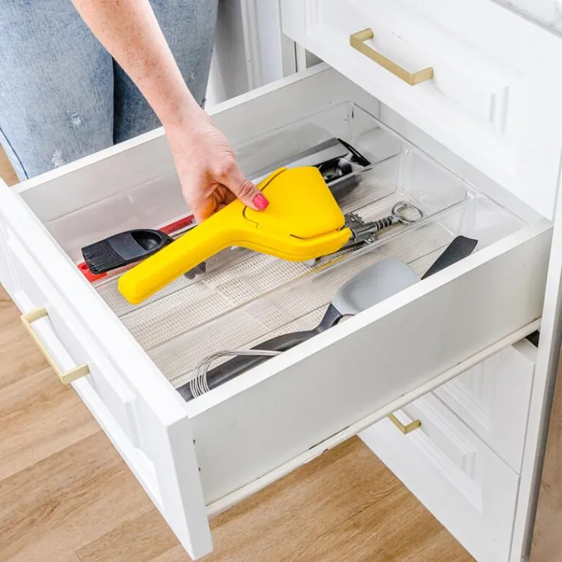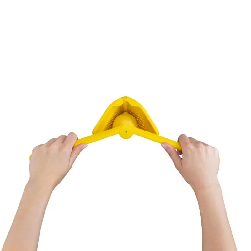 Fluicer ist die einfach zu bedienende Zitronenpresse von Dreamfarm, die sich zusammenfalten und so platzsparend verstauen lässt. Fluicer wird mit beiden Händen bedient, so lässt sich genügend Kraft aus den Armen aufwenden, ohne die Hände übermaüßig zu belasten. Generell wird durch die klappbare Presse weniger Kraft benötigt, um den Saft aus der Zitrone zu pressen. Ein eingebautes Sieb fängt die Kerne auf und ist zugleich ein Trichter, der den Saft aus der Zitrone punktgenau in ein darunter stehendes Glas ableitet. Fluicer besteht aus Polypropylen und Edelstahl und ist 25 cm lang. Nach Gebrauch kann die Zitruspresse in der Spülmaschine gereinigt werden.