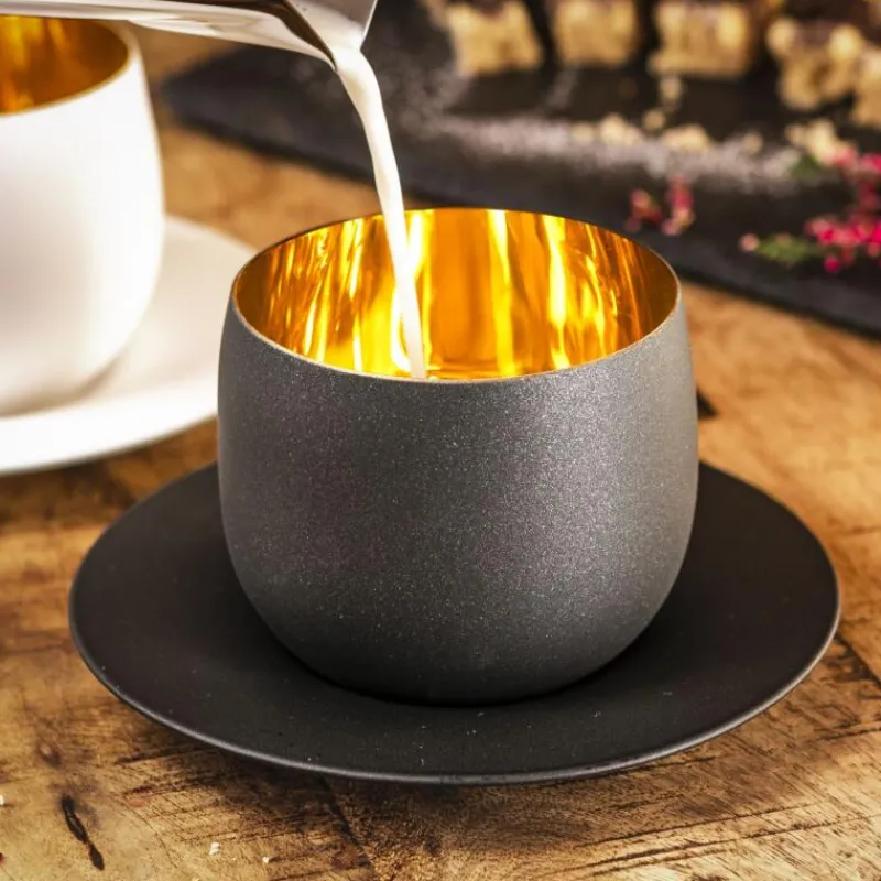 Cosmo Cappuccinobecher mit Untersetzer Gold 109/3 in Geschenkröhre von Eisch