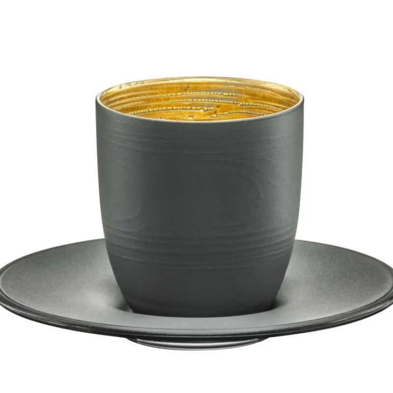Cosmo Espressobecher mit Untersetzer Grau-Gold 109/6 in Geschenkröhre von Eisch