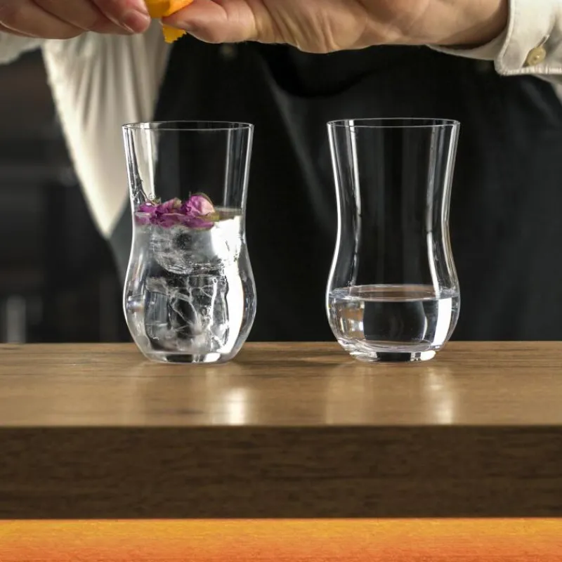 Das handgefertigte Gin Tonic Glas kann sowohl als Probierglas für puren Gin als auch als kleines Cocktailglas für Gin & Tonic genutzt werden, Der untere, bauchige Teil gibt reinem Gin genügend Raum, um seine Aromen zu entfalten, die dann durch den langgezogenen Kamin des Glases zu Nase gelangen. Dank des leicht gebogenen Randes gelangt der Gin sanft und breit auf die Zunge. Alternativ können auch Eiswürfel und Tonic Water hinzugegeben werden. Nach jedem Schluck kann bei Bedarf Tonic nachgeschenkt werden, bis das perfekte Verhältnis zwischen Gin und Tonic erreicht ist. So entwickelt sich der Gin-Genuss immer weiter, bis ein ganz individuelles Verhältnis zwischen Gin und Tonic erreicht ist. Das Set enthält zwei Gläser in einer Geschenkröhre.