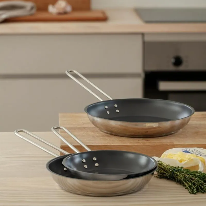 Die Bratpfanne mit einem Pfannenkörper aus teilweise recyceltem Post-Consumer-Edelstahl von Eva Solo ist mit einer innovativen Technik ausgestattet: Durch die keramische Slip-Let-Antihaftbeschichtung wird das Anhaften und Anbrennen von Speisen verhindert. Die Beschichtung der Pfanne hält Temperaturen von bis zu 400 Grad Celcius stand. Die Bratpfanne besteht aus einer Basis aus Aluminium und hochwertigem Edelstahl, der Griff ebenso aus dem hochwertigen Edelstahl. So bleibt dieser auch bei Gebrauch kalt, innen ist die Pfanne mit der beschriebenen Antihaftbeschichtung ausgestattet. Diese entsteht mithilfe moderner Lasertechnologie, mit der eine Titanlegierung direkt mit der Edelstahloberfläche verbunden wird. Die Pfanne ist für alle Herdarten geeignet und kann in der Spülmaschine gereinigt werden. Sie hat einen Durchmesser von 20 cm und ist 7 cm hoch.