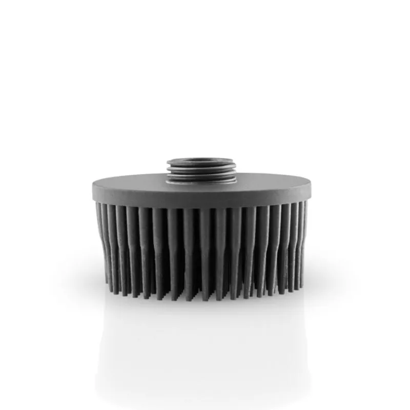 Die Spülbürste von Eva Solo stellt sicher, dass auch in der Küche angemessene Hygienestandards eingehalten werden. Praktischerweise lässt sich ihr Bürstenkopf auswechseln, sodass immer eine hygienische Reinigung erfolgt und zudem durch einen geringeren Materialverbrauch die Umwelt geschützt wird. Die langlebigen Silikonborsten trocknen extrem schnell, während der runde Bürstenkopf zuverlässig Schmutz entfernt. Der Ersatzbürstenkopf ist 3 cm hoch, hat einen Durchmesser von 5 cm und besteht aus Silikon, Kunststoff und Stahl.