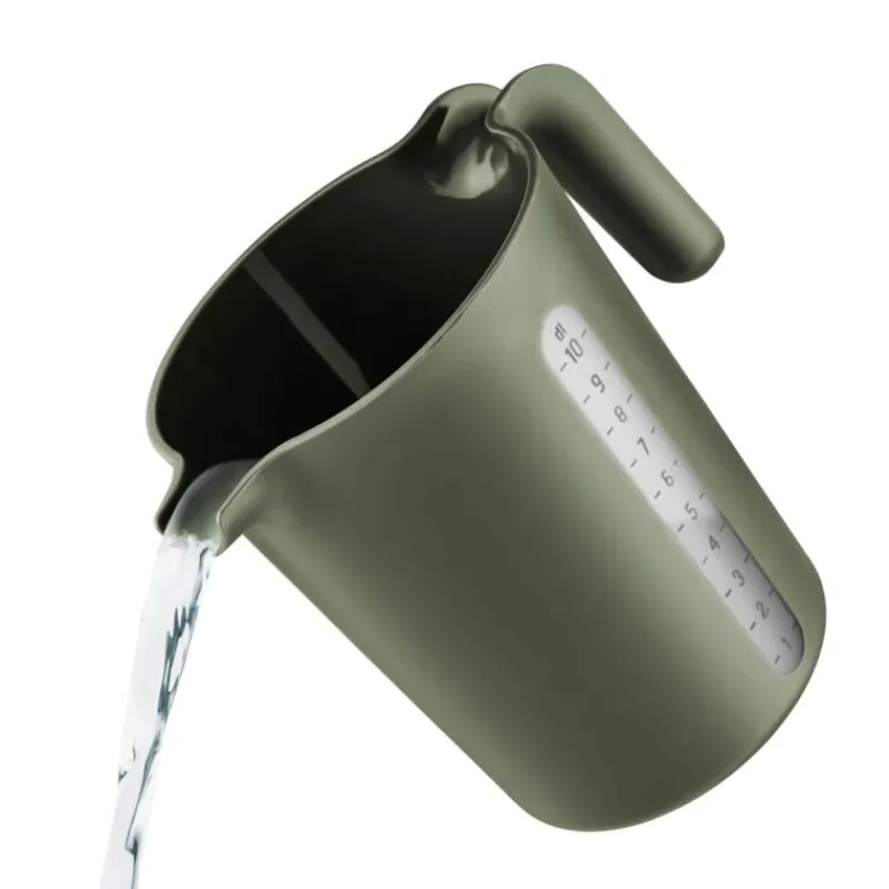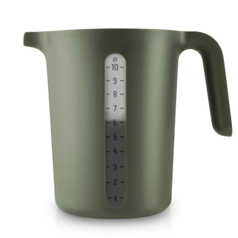 Die neue Green Tools Serie von Eva Solo greift den aktuellen Trend zu mehr Nachhaltigkeit und Umweltfreundlichkeit auf. Das verwendete Verbundmaterial ersetzt dabei die Hälfte des sonst verwendeten Kunststoffs durch eine allergiegetestete Weizenfaser (getestet von Intertek). So wird Plastik eingespart und es entstehen schlichte, aber durchdachte und umweltfreundliche Produkte für die Küche. Ein Teil der Green Tools Serie ist der Messerbecher mit einem Füllvolumen von 1000 ml. Lästiges Umrechnen wird mit diesem Messbecher überflüssig – der Messbecher weist Maßangaben in Dezilitern, Flüssigunzen (fl oz), Tassen und Gramm aus. Darüber hinaus können in dem mikrowellengeeigneten Messerbecher (max. Temperatur 100°C) nach dem Abmessen direkt erhitzt werden. Er lässt sich in der Spülmaschine reinigen und ist 15,5 cm hoch.
