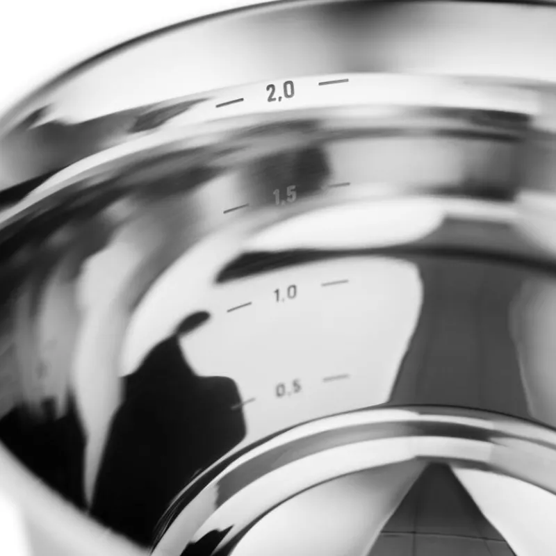Die Green Tools Serie von Eva Solo greift einen aktuellen Trend zu mehr Nachhaltigkeit und Umweltfreundlichkeit. Die Serie besteht aus funktionellen Küchenutensilien, bei denen auf nachhaltiges bzw. recyceltes Material und klare Linien Wert gelegt wurde. Ein Teil der Green Tools Serie ist die Rührschüssel mit einem Fassungsvermögen von 2,3 Litern. Sie lässt sich ideal zum Mischen, Kneten und Aufbewahren von Lebensmitteln verwenden und kann problemlos mit Schneebesen oder Handmixern aus Metall verwendet werden. Die Schüssel besteht zu 90% aus recyceltem Edelstahl, daher ist sie sher robust und langlebig. Ein Gummiring an der Unterseite sorgt für einen sicheren Stand während der Verwendung. Eine Skalenmarkierung an der Innenseite erleichtert das Abmessen von Zutaten, zudem ist die Rührschüssel spülmaschinengeeignet. Die Green Tools Rührschüssel hat einen Durchmesser von 19 cm und ist 13 cm hoch.