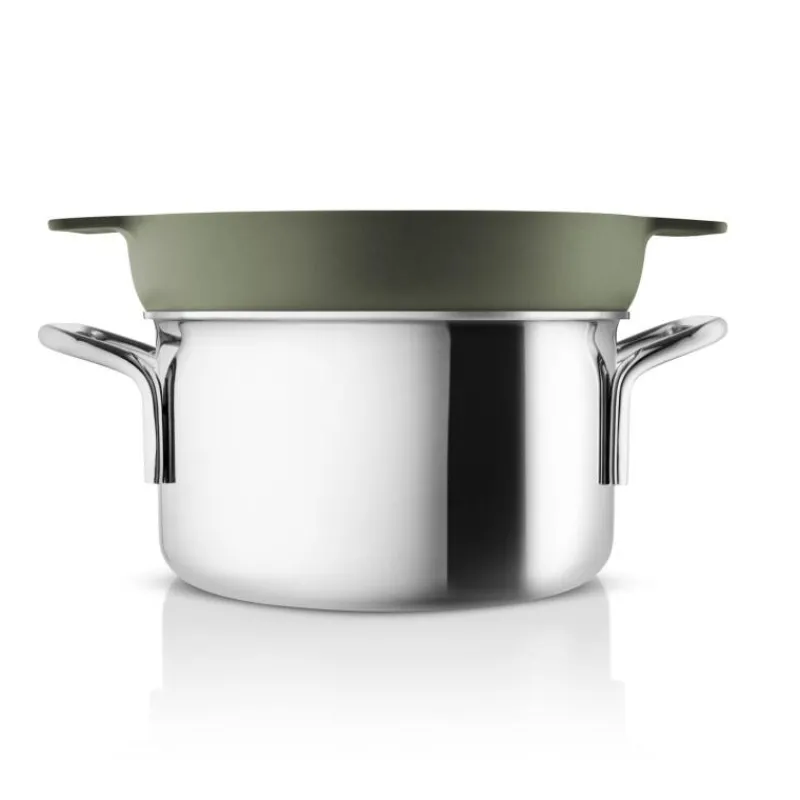 Die neue Green Tools Serie von Eva Solo greift einen aktuellen Trend zu mehr Nachhaltigkeit und Umweltfreundlichkeit. Das verwendete Verbundmaterial ersetzt dabei die Hälfte des sonst verwendeten Kunststoffs durch eine allergiegetestete Weizenfaser (getestet von Intertek). So wird Plastik eingespart und es entstehen schlichte, aber durchdachte und umweltfreundliche Produkte für die Küche. Ein Teil der Green Tools Serie ist das feinmaschige Sieb, das vielfältige Anwendungsmögichkeiten bietet. Ob zum Seihen, Sieben oder als Durchschlag: Mehl, Kakao oder Puderzucker werden zu feinstem Pulver, Pastawasser lässt sich einfach abgießen und Obst oder Gemüse gründlich waschen. Das Sieb steht auf vier stabilen Füßen und hat zwei praktische Griffe. Es passt auf Töpfe mit den Durchmessern 16, 20 bzw. 24 cm. Es lässt sich in der Spülmaschine reinigen und ist 27,3 cm lang.