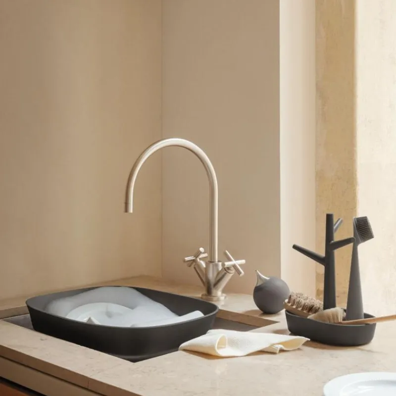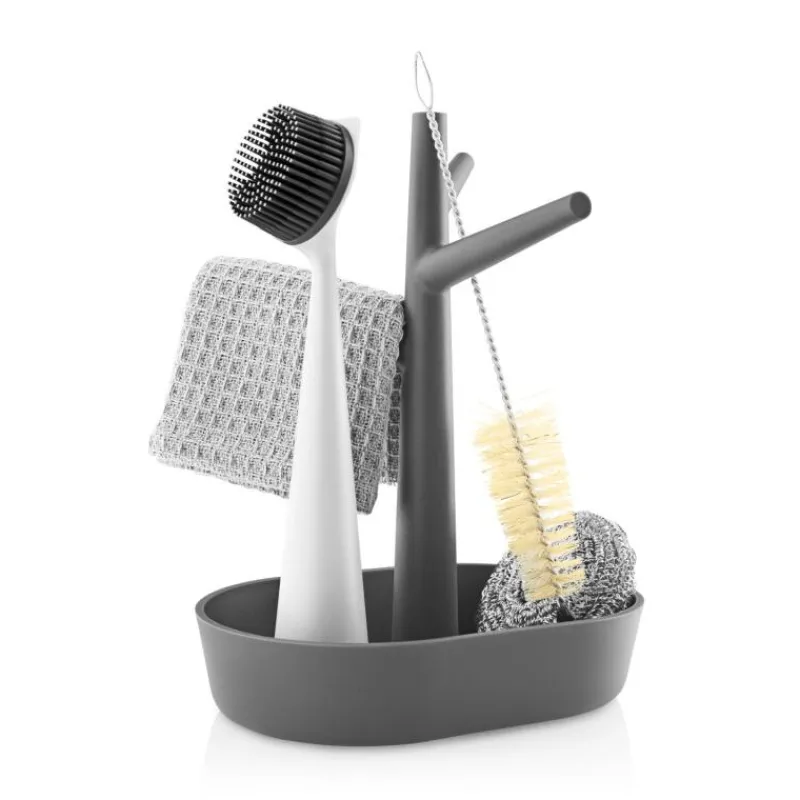 Schluss mit der Unordnung an der Küchenspüle! Der praktische, funktionelle Küchen-Organizer von Eva Solo ist nicht nur eine dekorative Aufbewahrungsmöglichkeit von Spülbürste, Spülmittel und Spüllappen, die Utensilien können in dem Halter komplett trocknen und so hygienisch aufbewahrt werden. Überschüssiges Wasser kann nach dem Spülen einfach aus der Auffangschale abgegossen werden. Passend zum Organizer sind Spülbürsten mit Gummikopf und Spülmittelspender separat erhältlich. Der Küchen-Organizer ist 23,5 cm hoch und 19 cm breit.