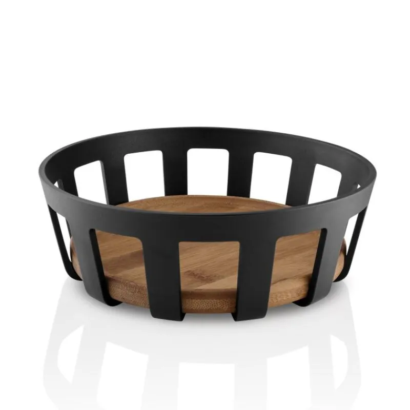 Das dezente, zeitlose Design des Brotkorbs passt perfekt in die Serie Nordic Kitchen von Eva Solo. In dem funktionellen, formschönen Korb können nicht nur Brötchen und frisches Brot, sondern auch Obst oder Gemüse serviert und dekorativ aufbewahrt werden. Der Obstkorb besteht aus Bambusholz und mattschwarzem Kunststoff, das einfach mit einem feuchten Tuch abgewischt werden kann. Mit einem Durchmesser von 22 cm passt der Nordic Kitchen Brotkorb in jedes Zuhause.