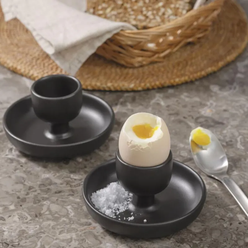 Minimalistische Formensprache und Funktionalität sind die Grundpfeiler des skandinavischen Designs und lieferten die Inspiration für die Serie Nordic Kitchen. Das Geschirr der Serie passt perfekt in Küchen im skandinavischen Stil. Dies gilt auch für die praktischen Eierbecher aus schwarzem Feinsteinzeug. Der rustikale Look des schlicht geformten Eierbechers überzeugt sowohl im Alltag als auch zu besonderen Anlässen und spiegelt den entspannten, skandinavischen Lebensstil wider. Der integrierte Unterteller fängt Eierschalen und Salt auf und bietet Platz für einen Löffel, um so den Tisch sauberzuhalten. Die Eierbecher sind geeignet für die Reinigung in der Spülmaschine und können sowohl im Gefrierfach, im Ofen und in der Mikrowelle verwendet werden. Sie haben einen Durchmesser von 11 cm und sind 6 cm hoch.