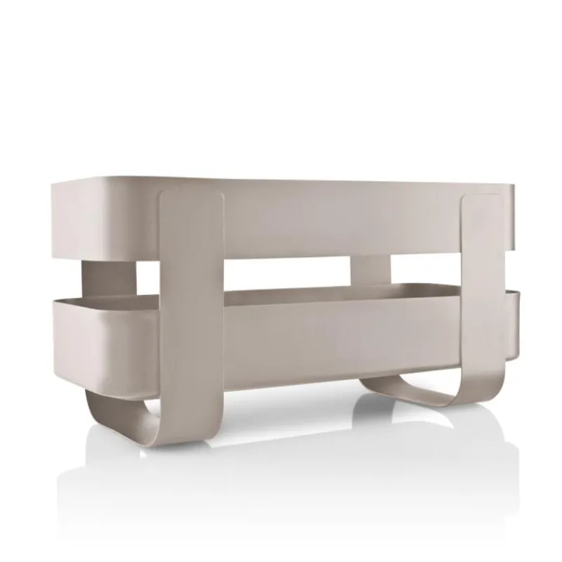 Minimalistische Formensprache und Funktionalität sind die Grundpfeiler des skandinavischen Designs und lieferten die Inspiration für die Serie Nordic Kitchen. Die Accessoires der Serie passen perfekt in Küchen im skandinavischen Stil. Der selbstbewässernde Kräutertopf versorgt Sie mit frischen und gesunden Küchenkräuter ohne viel Pflegeaufwand. Dank des intelligenten Selbstbewässerungssystem mit einer Kapillarmatte nehmen die Pflanzen Wasser ganz von selbst und nach Bedarf auf, zudem müssen Kräuter nicht extra umgetopft werden, da Standardtöpfe direkt in den Behälter passen. Egal ob im Küchenregal oder auf der Fensterbank, der sandfarbene Kräutertopf aus pulverbeschichtetem Stahl fügt sich perfekt in jedes moderne Zuhause ein und bildet einen schönen Kontrast zu den grünen Pflanzen. Der Behälter ist 31 cm breit und 15,4 cm hoch, alle Teile außer der Kapillarmatte sind spülmaschinengeeignet.