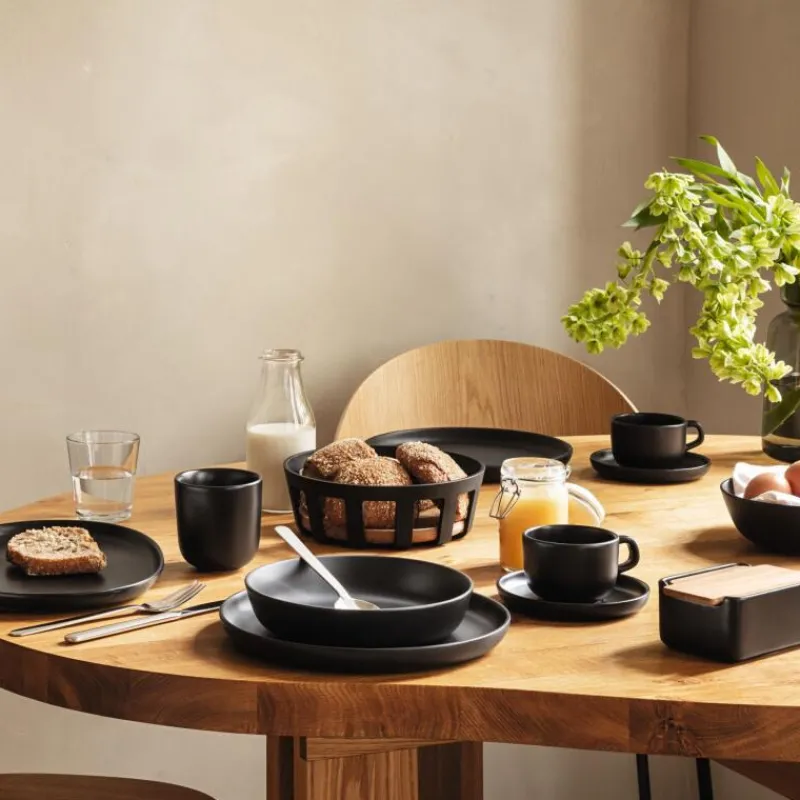 Minimalistische Formensprache und Funktionalität sind die Grundpfeiler des skandinavischen Designs und lieferten die Inspiration für die Serie Nordic Kitchen. Das Geschirr der Serie passt perfekt in Küchen im skandinavischen Stil. Dies gilt auch für die Tasse mit Untertasse aus schwarzem Feinsteinzeug. Der rustikale Look der schlicht geformten Tasse überzeugt sowohl im Alltag als auch zu besonderen Anlässen und spiegelt den entspannten, skandinavischen Lebensstil wider. Servieren Sie Kaffee, Tee und andere Heißgetränke stilvoll und ansprechend. Die Tasse ist geeignet für die Reinigung in der Spülmaschine und kann sowohl im Gefrierfach, im Ofen und in der Mikrowelle verwendet werden. Außerdem ist sie stapelbar und kann platzsparend verstaut werden. Sie hat einen Durchmesser von 9 cm und fasst 200 ml.