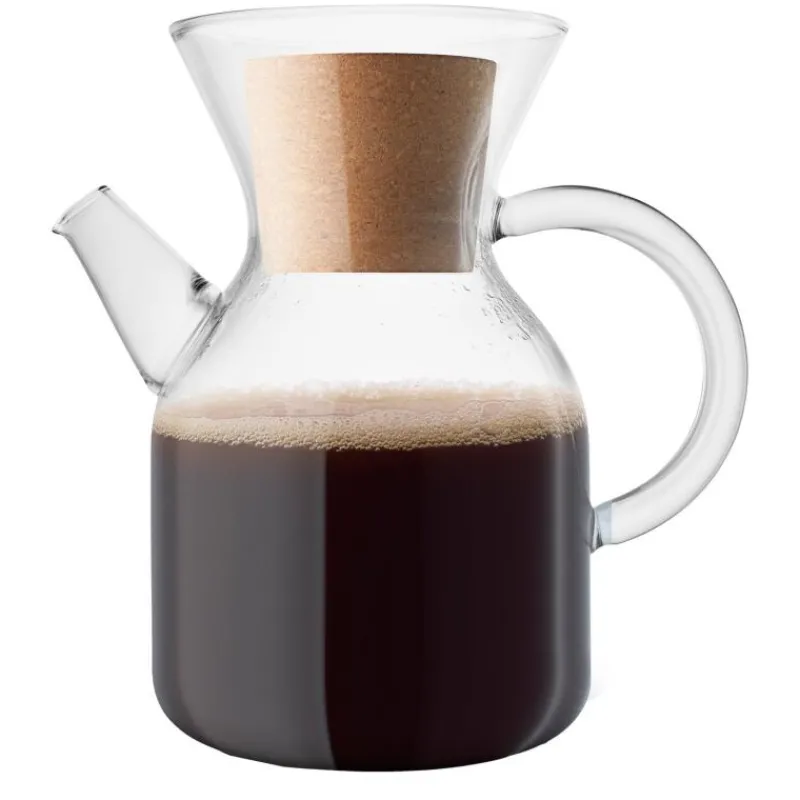 Mit dem Pour Over Kaffeebereiter von Eva Solo kann man klassischen Filterkaffee auf eine einfache und elegante Weise zubereiten. Das Wasser läuft ganz langsam durch den Filter, wodurch sich das Kaffeearoma bestmöglich entfalten kann. Im Gegensatz zum Papierfilter lässt sich der Edelstahlfilter wiederverwenden, und es werden keine Aromen – die ätherischen Öle – herausgefiltert. Sobald der Kaffee fertig ist, wird der Filter entfernt und durch den praktischen Korkstopfen ersetzt. Die Kanne besteht aus hitzebeständigem Glas, das hohe Temperaturen verträgt. Der Filter und der solide Griff bleiben bei der Zubereitung kalt. Sowohl die Glaskanne als auch der Stahlfilter sind spülmaschinengeeignet.