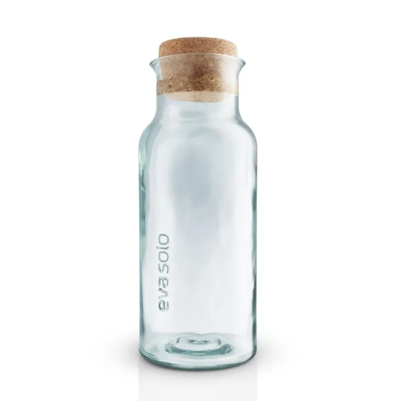 Das individuelle Aussehen der Recycled Karaffe von Eva Solo entsteht durch die Verwendung von 100% recyceltem Glas und dem schlichten und zurückhaltendem Design. Mit der Glaskaraffe ist frisches Wasser stets griffbereit, da die Karaffe in die meisten Kühlschranktüren passt. Der dicht schließende Deckel aus Kork sorgt dafür, dass der Inhalt im Kühlschrank keinen fremden Geschmack annimmt. Die Wasserkaraffe ist spülmaschinengeeignet, der Korken sollte nur feucht abgewischt werden.