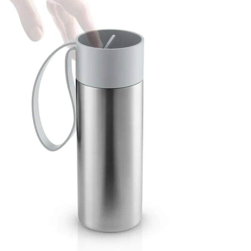 Der To Go Cup von Eva Solo ist der ideale Begleiter für unterwegs, gleich ob in der Hand, der Handtasche, im Fahrradkorb, im Auto oder in der Bahn. Er hält dank seiner doppelwandigen Isolierhülle Heißgetränke lange warm und Kaltgetränke angenehm kühl. Der schlichte Thermobecher hat einen praktischen Trageriemen und passt in alle gängigen Getränkehalterungen. Der Deckel lässt sich dank einer Klickfunktion unterwegs mit einer Hand öffnen. Der To Go Cup Marble Grey hat ein Fassungsvermögen von 350 ml, eine Höhe von 20 cm und einen Durchmesser von 6,5 cm. Er ist spülmaschinengeeignet und auslaufsicher.