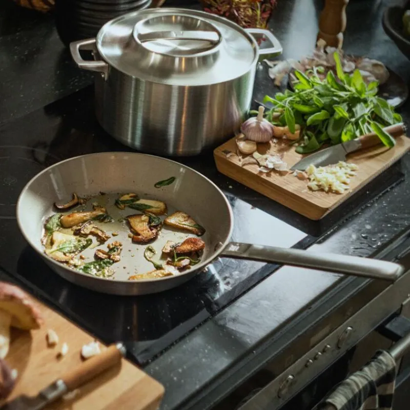 Die klassische Bratpfanne aus Edelstahl der Serie Norden trägt skandinavischen Kochtraditionen Rechnung und überzeugt mit höchster Qualität und der Verwendung natürlicher und hochwertiger Materialien. Ihre Innenseite ist mit einer PFAS-freien Keramik-Antihaftbeschichtung mit Mineralbeschichtung versehen ist, diese verleiht der Bratpfanne eine natürliche anfängliche Antihaft-Eigenschaften, die selbst hohen Temperaturen standhält. Der dicke Boden mit Aluminium-Kern mit einer Stärke von 3,5 mm garantiert ein gleichmäßiges Erhitzen auf allen Herdarten, außerdem ist die Pfanne ofenfest bis zu einer Temperatur von 270 Grad. Sie eignet sich ideal zum Braten von Fleisch und anderen leckeren Speisen. Nach Gebrauch sollte sie von Hand gespült und sorgfältig abgetrocknet werden. Die Stahl-Bratpfanne hat einen Bodendurchmesser von 21 cm, ist 10,9 cm hoch und inklusive des Griffes 51,5 cm lang.