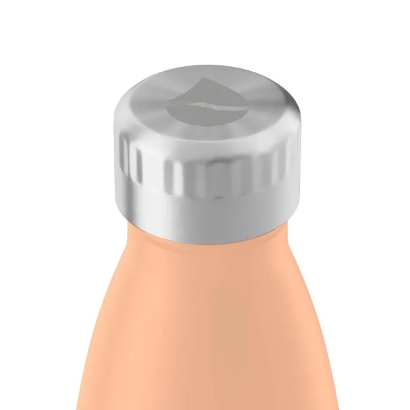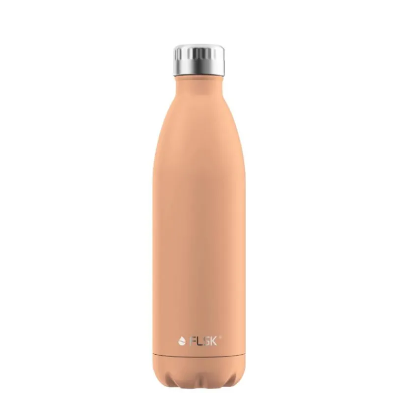Die Trinkflasche in der Farbe Peach kommt mit ihrem matt-pfirsichfarbenem Powdercoating edel und doch modern puristisch daher. Egal ob Wasser oder Wein, die optimale Trinktemperatur bleibt mindestens 24 Stunden konstant ebenso wie der Kaffee oder Tee schön heiß bleibt. Egal ob zu Hause oder unterwegs, die FLSK ist immer eine treue und absolut dicht haltende Begleitung. Sie ist insgesamt 28,6 cm hoch und hat nur ein geringes Gewicht von 420 Gramm. Gefertigt wird sie aus Edelstahl.