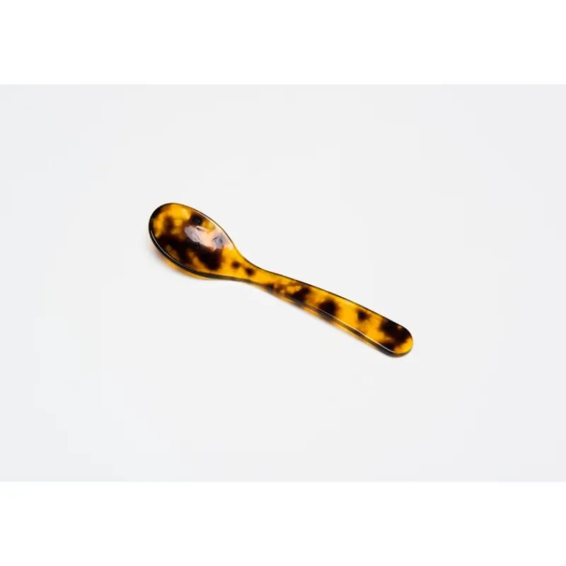 Der schildpattartig gefärbte Eierlöffel mit perlmuttartigem Schimmer von G. F. Heim Söhne wirkt exquisit und elegant. Aufgrund des hochwertigen Materials ist er griffig und sehr stabil, dabei glatt und formschön. Das angenehme und braun durchsetzte Goldgelb erinnert an die Färbung von Schildkrötenpanzern. Der 12,5 Zentimeter lange und stilvolle Eierlöffel bereichert jedes Gedeck, die Verkostung von Eiern und Joghurts wird mit ihm zu einem smarten Genusserlebnis.