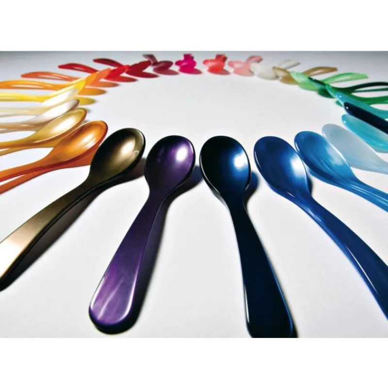 Die eleganten und bunten Eierlöffel aus Acrylglas entsprechen höchsten Designanforderungen: In Handarbeit gefertigt, präsentieren sie sich als funktionelles und gleichzeitig kunsthandwerklich ausgereiftes Küchenutensil. Die Löffel werden aus dem Kunststoff ausgeschnitten, anschließend geformt, geschliffen und poliert. G. F. Heim Söhne fertigt Eierlöffel mit hohem Qualitätsgrad jenseits jeglicher Massenproduktion und mit besonderem Charakter.