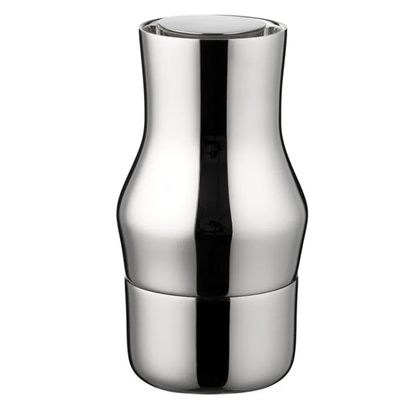Elegant, schlicht und mit durchdachtem Design ist die Gewürzmühle Dorotea der perfekte Begleiter in der Küche und auf dem Esstisch. Sie besteht aus recyceltem Edelstahl, einem nachhaltig genutzten und widerstandsfähigem Material und ist mit einem Keramikmahlwerk ausgestattet, welches sich an der Oberseite der Mühle befindet. So werden Salz, Pfeffer und andere trockene Gewürze von der Schwerkraft von ganz allein nach unten geleitet und werden dort gleichmäßig gemahlen. Kleine Gewürzreste, die beim Mahlen übrig bleiben, gelangen durch das oben liegende Mahlwerk nicht auf den Tisch oder die Arbeitsfläche, so bleibt ganz ohne Unterlage alles sauber. Das sanft geschwungene Design der Mühle ist inspiriert von der natürlichen Umgebung des schwedischen Dorfes Dorotea, der Heimat der Designerin Monica Förster, und erinnert mit seiner fließenden Form an die sanften Übergänge zwischen Bergen und Tälern. Gleichzeitig liegt die Mühleso gut in der Hand und lässt sich einfach bedienen. Die Gewürzmühle Dorotea besteht aus poliertem Edelstahl, ist 14 cm hoch und hat einen Durchmesser von 7,3 cm.