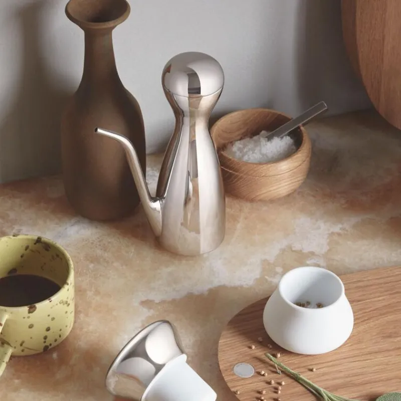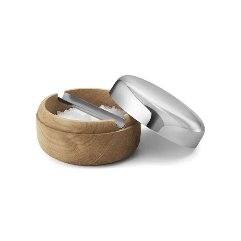 Tägliche Rituale sollten uns ein gutes Gefühl geben. Vom morgendlichen Kaffee bis zum Zubereiten einfacher Mahlzeiten: Es sind die kleinen Dinge, die ein Lächeln auf unsere Gesichter zaubern. Wenn wir die Dinge, die wir dabei verwenden, lieben, können wir diese Rituale noch mehr genießen. Hergestellt aus einer Vielzahl moderner Materialien wie Porzellan, Stahl, Eiche, Silikon und Glas ist jeder Artikel der Alfredo-Serie vielseitig und gänzlich funktionell. Die Materialien ergänzen einander, so dass die Kollektion eher harmonisch als homogen ist. Diese Artikel verleihen Ihren Routinen Stil – einen Stil, der sich einfach von der Küchenanrichte auf den Esstisch übertragen lässt. Der kleine Salzbehälter aus massivem Eichenholz und glänzend poliertem Edelstahl passt sich perfekt in die Serie ein und ist ideal für den Alltag geeignet. Mit seinem integrierten Löffel lässt sich das Salz einfach aus dem Behälter löffeln.