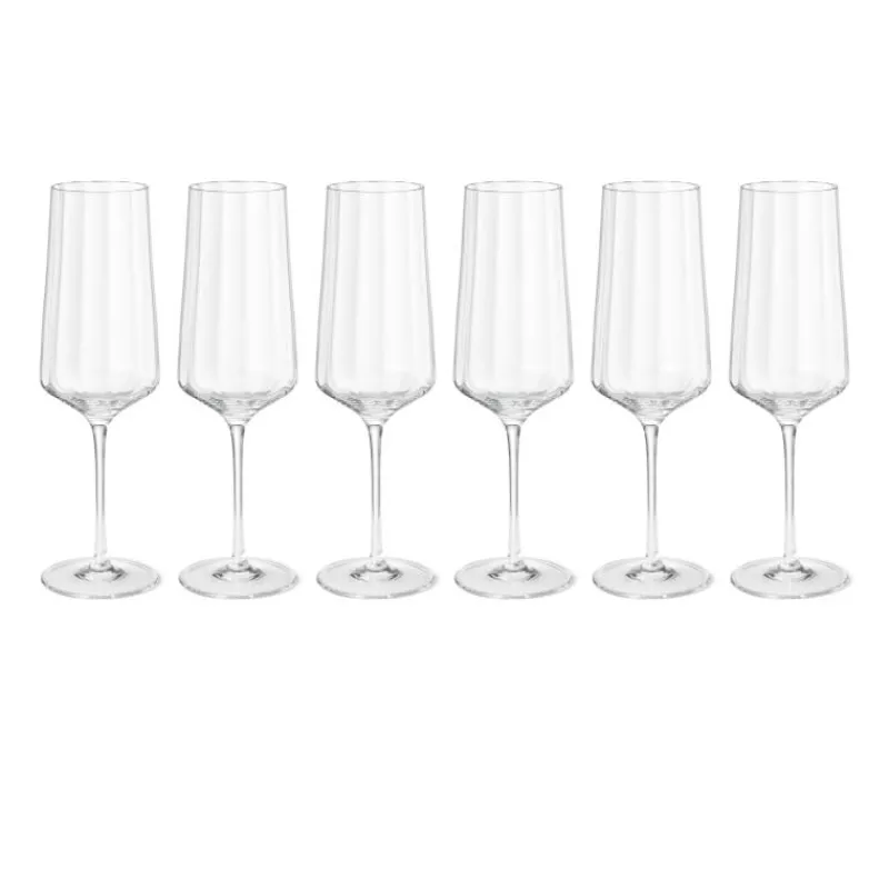 Das Design der Bernadotte Champagnergläser von Georg Jensen ist an die frühen Entwürfe von Sigvard Bernadotte angelehnt, der nicht nur als einer der ersten Designer mit Jensen zusammenarbeitete, sondern auch ein Prinz des dänischen Königshauses war. Die Kollektion ist ein beispielhaftes Zusammenspiel aus skandinavischem Minimalismus und von der Art Déco inspirierten Modernität. Die Gläser werden im 6er-Set geliefert und bestehen aus hochwertigem Kristallglas, welches mit den charakteristischen Riffelungen versehen ist. Das elegante Design eignet sich für jeden Anlass und ist perfekt zum Servieren von Champagner und Sekt geeignet. Die Gläser sind jeweils 27 cm hoch, haben einen Durchmesser von 6,5 cm und ein Volumen von 270 ml.