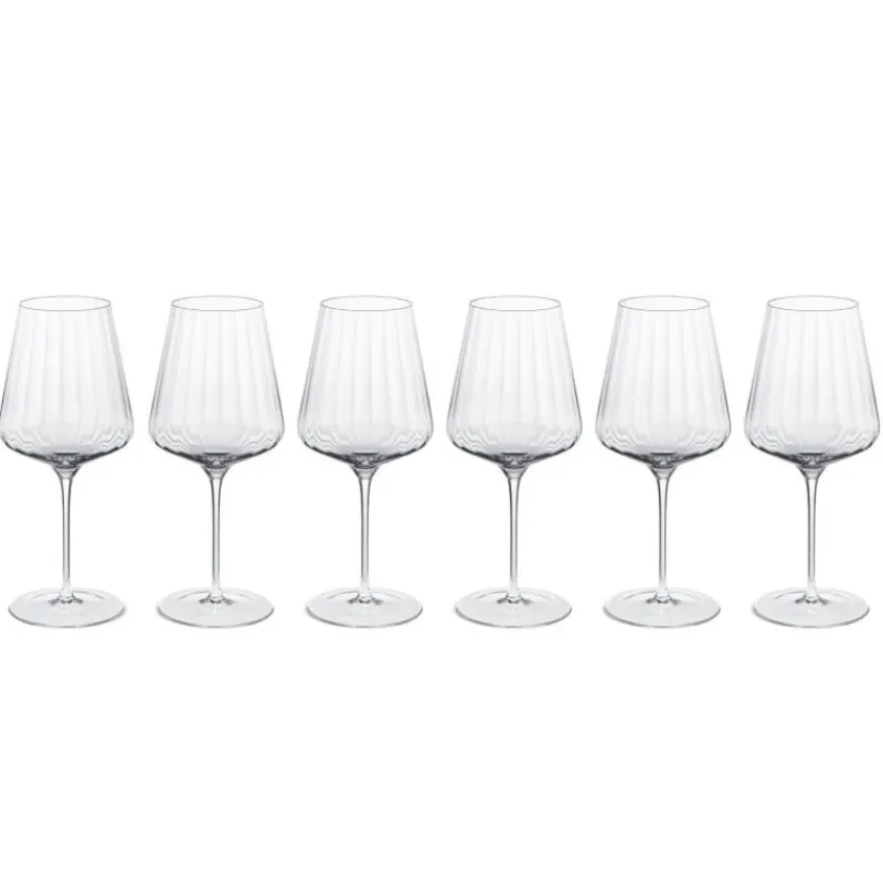 Das Design der Bernadotte Rotweingläser von Georg Jensen ist an die frühen Entwürfe von Sigvard Bernadotte angelehnt, der nicht nur als einer der ersten Designer mit Jensen zusammenarbeitete, sondern auch ein Prinz des dänischen Königshauses war. Die Kollektion ist ein beispielhaftes Zusammenspiel aus skandinavischem Minimalismus und von der Art Déco inspirierten Modernität. Die Gläser werden im 6er-Set geliefert und bestehen aus hochwertigem Kristallglas, welches mit den charakteristischen Riffelungen versehen ist. Das elegante Design eignet sich für jeden Anlass und ist perfekt zum Servieren von Rotwein geeignet. Die Gläser sind jeweils 22,5 cm hoch, haben einen Durchmesser von 10 cm und ein Volumen von 540 ml.