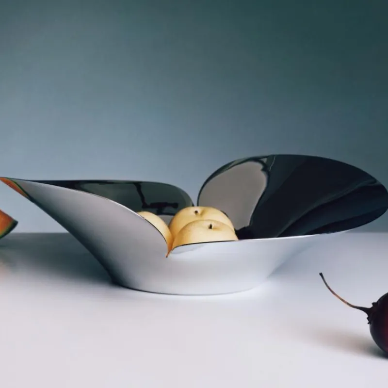 Die organische, blütenförmige Form des Bloom Botanica Tafelaufsatzes von Georg Jensen verleiht jeder Küche und jedem Wohnzimmer einen modernen Touch. Die stilvolle Schale ist 50 cm breit und 40 cm tief; sie ist ideal für Obst oder Gemüse geeignet. Sie besteht aus poliertem Edelstahl.