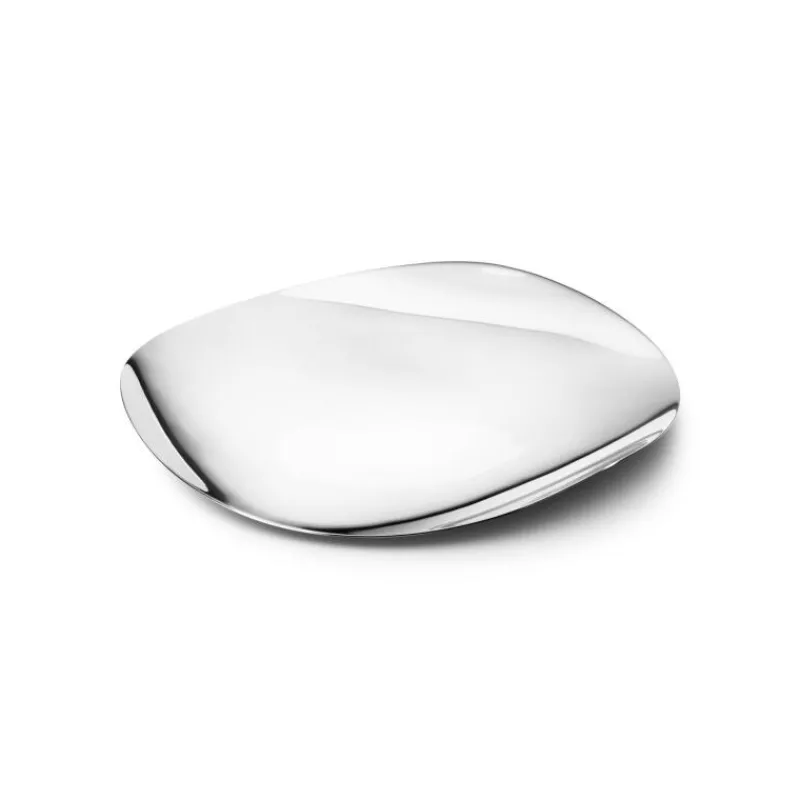 Die auffällige, organische Form der Cobra Servierplatte verleiht jeder Tischdekoration einen dynamischen Touch. Der Eindruck von Bewegung und die Verbindung von Design und Funktion sind nach wie vor präsent. Der elegante, silberne Schimmer macht dieses Stücke zu einer augenfälligen Ergänzung für jede Tischdekoration. Mit einem Durchmesser von 32 cm ist die Platte bestens zum Servieren geeignet, sie macht aber auch als edler Platzteller eine gute Figur. Sie besteht aus hochglanzpoliertem Edelstahl und kann in der Spülmaschine gereinigt werden.
