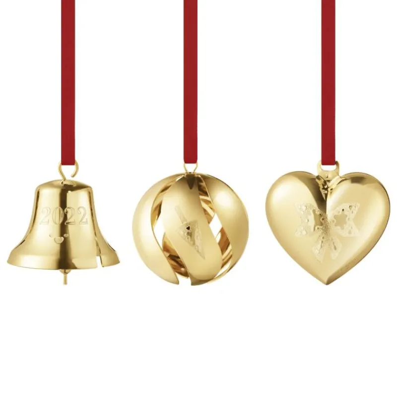 Weihnachtsschmuck 2022 Geschenkset Glocke, Kugel und Herz Goldauflage von Georg Jensen