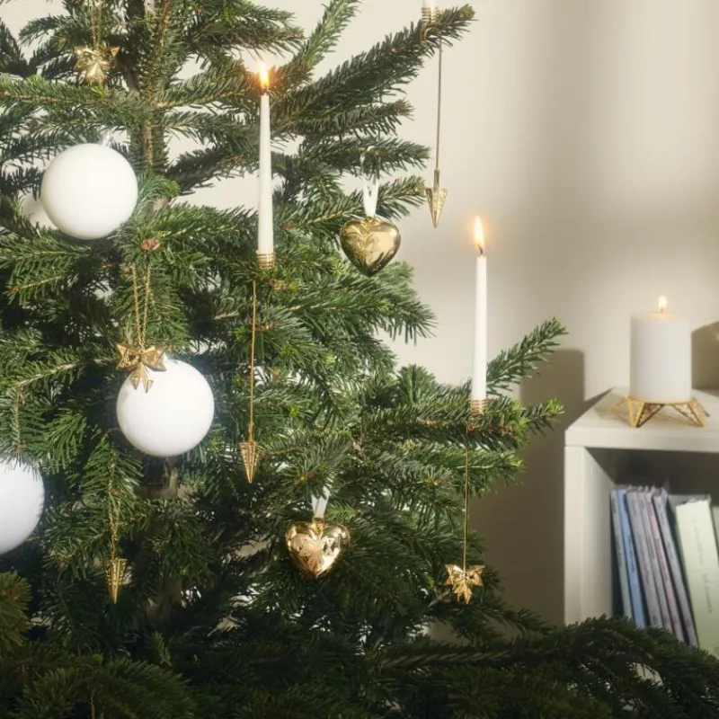 Die Designerin Sanne Lund Traberg entwirft elegante Accessoires um das Wohnen schöner zu gestalten. Nach ihrem Studium an der Royal Danish Academy of Fine Arts brachte sie ihre Karriere unter anderem zu dänischen Unternehmen wie Lego und Georg Jensen. Als Design Managerin bei Georg Jensen entwirft sie neben anderen Produktlinien die weithin bekannten Weihnachtsschmuck-Kollektionen. Sie führt ihre Designs ins teilweise Abstrakte, aber immer auch in die zeitgenössische Moderne, ohne dabei historische Traditionen auszublenden. Die Ornamente des Jahres 2022, Spitztüte und Schleife, wurde von Trabergs Kindheitserinnerungen inspiriert und zieren wie jedes Jahr eine Glocke, eine Kugel und Herz. Sie bestehen aus Messing mit 18-karätiger Goldauflage und werden mit jeweils zwei Stoffbändern in Rot und Weiß geliefert.