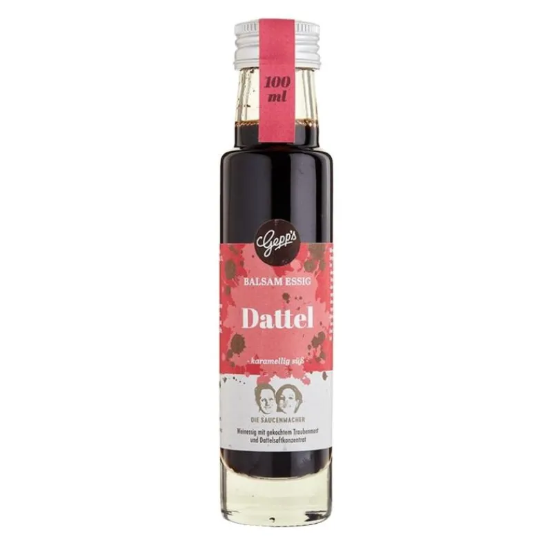 Der süßen Geschmack und den aromatischen Duft von Datteln trifft auf eine italienische Essigzubereitung, fertig ist die perfekte Zutat für Salat und Desserts, der leckere Akzent zu herzhaften Hauptgerichten oder die ideale Begleitung zu spanischen Tapas und arabischen Gerichten. Wie üblich bei Gepp’s enthält der Essig keine Konservierungsstoffe oder andere Zutaten und wird nach eigener Rezeptur hergestellt. Die Süße und Fruchtigkeit des Essigs kommt alle vom hohen Anteil an Traubenmost.