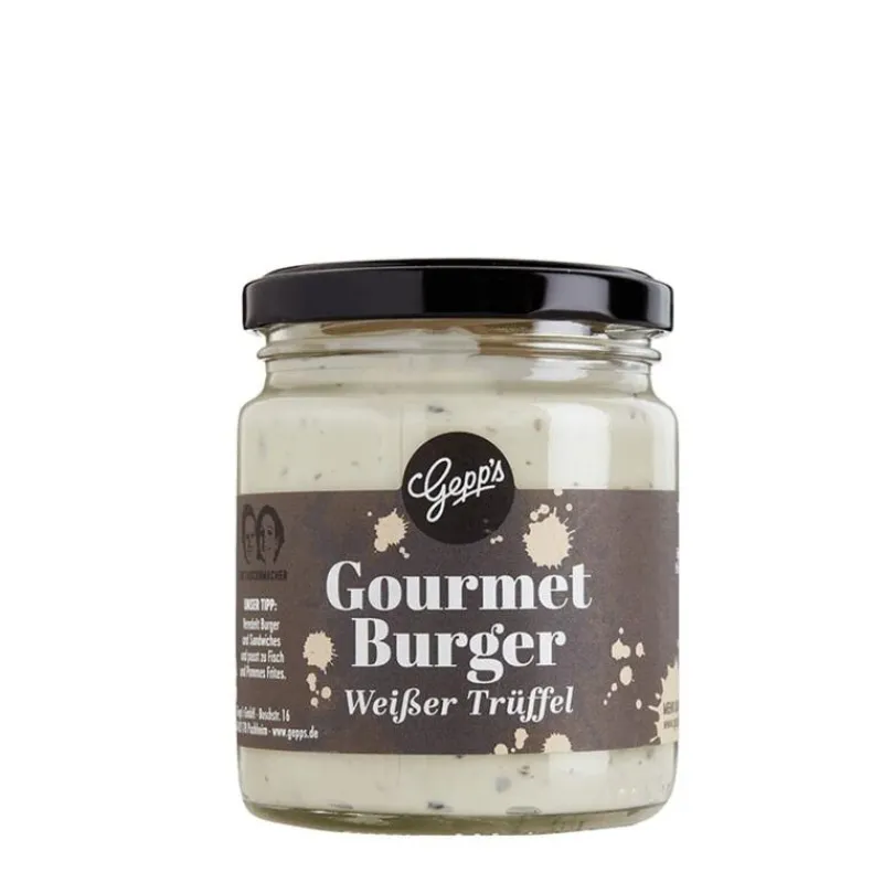 Für alle, die gerne experimentieren und mal etwas Neues probieren möchten, sind bei den Saucenmachern Gepp’s bestens aufgehoben. Die Sauce mit weißen Trüffeln ist eine Komposition, die Herz und Gaumen glücklich macht. Das kräftige Aroma und die reine Intensität der Königinnen aller Trüffel ist durchaus eine Geschmacksrevolution und kann süchtig machen. Lecker! Die Sauce passt perfekt zu Rindfleisch-Burgern und verfeinert Tofu-Varianten oder Gemüsebuletten mit Avocado. Auch zu Pommes oder als Dip ein echtes Erlebnis. Wie üblich bei Gepp’s wird sie nach eigener Rezeptur aus Zutaten in Bio-Qualität und ohne die Verwendung von Konservierungsstoffen und anderen Zusätzen hergestellt. Nach Anbruch ist die Sauce mindestens drei Monate im Kühlschrank haltbar.