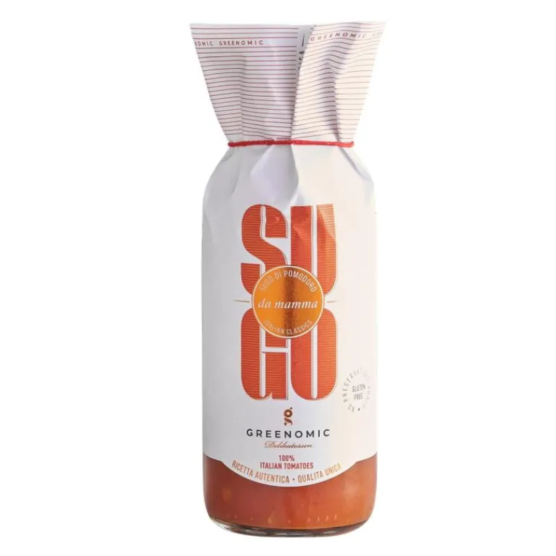 Der Sugo Chef Francesco da Mamma von Greenomic wird frisch zubereitet mit sorgfältig ausgesuchten Rohstoffen aus der vielfältigen Natur Italiens. Der Sugo ist eine äußerst leckere Tomatensoße mit dem frischen Geschmack von leckerem Gemüse wie Zucchini, Auberginen, Karotten, Zweibeln und weiteren Zutaten. Die liebevollen Verpackungen der Sughi von Greenomic Delikatessen sind auch optisch ein Genuss. Nicht nur zum selber essen, auch als Geschenk oder Mitbringsel – zum Beispiel in Kombination mit der einzigartigen Good Hair Day Pasta von Greenomic – ist der Sugo hervorragend geeignet.