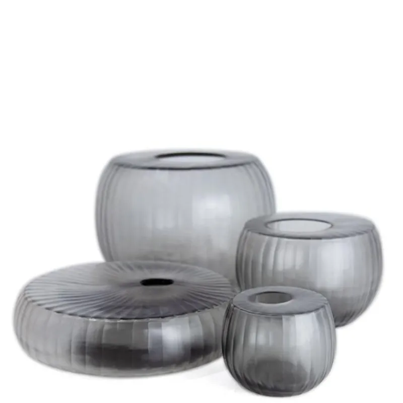 Die Vasen von Guaxs sind vielfältig, dekorativ, zeitlos – so auch die Madras L Grey. Das rundliche Gefäß mit dem markanten Rillenschliff ist für sich schon ein ganz besonders charmantes Wohnaccessoire, in dem einzelne Blüten attraktiv und geschmackvoll präsentiert werden können. Die Vase ist 24 cm hoch und hat einen Durchmesser von 35 cm. Das elegante Grau ist von einem angenehm warmem Ton, das harmonische Zusammenspiel des Materials mit der Form und der kreisförmigen Struktur ermöglicht dem dekorativen Glasobjekt einen ganz individuellen und glanzvollen Auftritt.