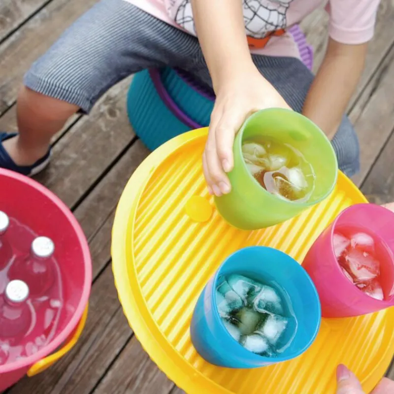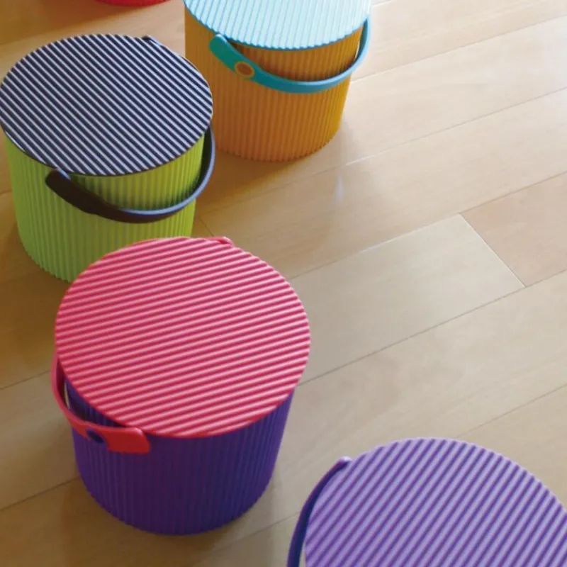 Die Kunststoff-Eimer aus in modernem, japanischen Design machen Schluss mit herkömmlichen Plastikeimern, die man nach dem Gebrauch am liebsten verstecken möchte: Omnioutil ist derartig vielseitig nutzbar, dass er sowohl im Garten als auch im Haus zum unverzichtbaren Begleiter wird. Das Rillenmuster in mattschimmernden Polypropylen verleiht dem Eimer eine klassische Note, macht ihn aber auch sehr robust: er ist kälte- und hitzefest (von -20°C bis 120°C) und mit bis zu 150 kg belastbar. Zudem lässt sich der lebensmittelechte Aufbewahrungsbehälter einfach reinigen und ineinander stapeln. Ob als Aufbewahrung für Gemüse oder Obst, Kinderhocker oder Abfalleimer, Omnioutil macht eine gute Figur und ist ein stylisher Hingucker. Besonders bei der Nutzung im Garten ist das Loch im Henkel von Vorteil: hier kann ein Gartenschlauch fixiert werden, der den Eimer mit Wasser befüllt. Die zweifarbige Vivid-Kollektion wird in verschiedenen Größen hergestellt, in der Mini-Größe hat der Eimer ein Volumen von vier Litern, ist 21 cm hoch und hat einen Durchmesser von 22,4 cm.