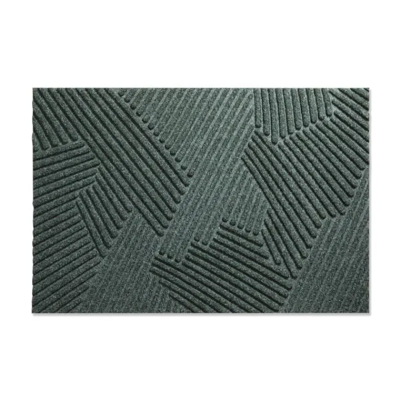 Das sanfte Muster des Mattenmodells Strå erinnert an hohes Gras, das sich im Wind wiegend hin und her bewegt. Der angenehme Grünton ist angelehnt an die Inspirationsquelle des Musters und fügt sich angenehm ins Gesamtbild ein. So strahlt das von Kristine Five Melvaer designte Modell Ruhe aus und heißt die Gäste im Eingangsbereich in einer ansprechenden Umgebung willkommen. Die Funktionalität steht der Optik der Matte allerdings in nichts nach. Die grobe Oberfläche bietet neben einem guten Abstreifeffekt, eine hohe Absorptionsfähigkeit und gute Schmutzfangeigenschaften. Die gummierte Unterseite sorgt zum einen für einen Anti-Rutsch-Effekt und verhindert darüber hinaus, dass Feuchtigkeit in den Boden einzieht. Die grobe Oberfläche bietet neben einem guten Abstreifeffekt, eine hohe Absorptionsfähigkeit und gute Schmutzfangeigenschaften. Die gummierte Unterseite sorgt zum einen für einen Anti-Rutsch-Effekt und verhindert darüber hinaus, dass Feuchtigkeit in den Boden einzieht. Die Matte ist 60 cm breit, 90 cm lang und etwa 11 mm hoch. Die Matten werden zu einem großen Anteil in Handarbeit hergestellt. Leichte Abweichungen bei der Farbe, Größe und der Optik sind daher möglich. Gefertigt wird die Fußmatte aus einem Textilmaterial, das komplett aus recyceltem Kunststoff besteht. Die Matte benötigt nur wenig Pflege: Im Alltag lässt sie sich mit dem Staubsauger reinigen oder auch abschütteln. Falls eine gründlichere Reinigung nötig sein sollte, kann die Fußmatte mit Wasser abgespült werden.