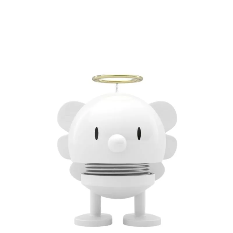 Lachen ist ansteckend. Und die Hoptimisten sorgen, wie der Name schon sagt, hüpfend für gute Laune und ein Lächeln auf Ihren Lippen. Der klassische Hoptimist ist der Inbegriff von Fröhlichkeit, Optimismus und guter Laune und verbreitet mit dem rundlichen, freundlichen Ausdruck Freude, wo auch immer er hüpft. Tippt man dem lustigen Gesellen auf den Kopf, fängt die Feder an zu schwingen und versetzt den Hoptimisten somit in Bewegung. Das Modell Bumble als Weihnachts-Engel trägt über seinem Kopf einen goldenen Heiligenschein und ist mit Flügeln aus Eichenholz ausgestattet. Die freundlichen Hoptimisten sind heute ein Teil der dänischen Designgeschichte und sorgen weit über die Grenzen Dänemarks hinaus für gute Laune – so natürlich auch zum Weihnachtsfest. Der Artikel wird aus Kunststoff hergestellt und ist 7,5 cm hoch.