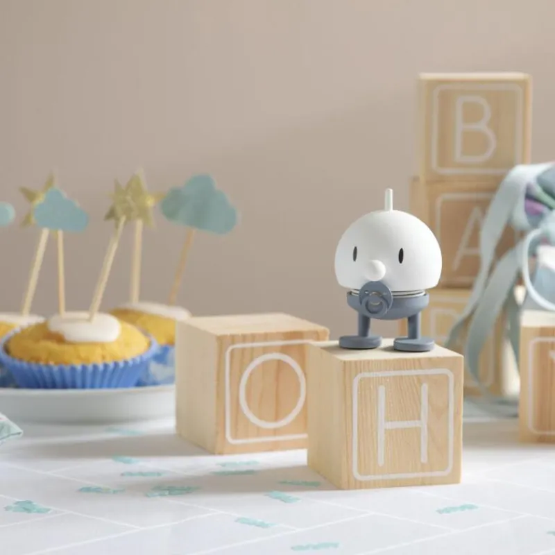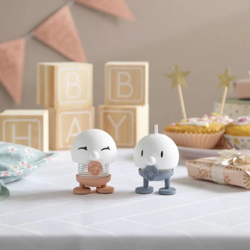 Lachen ist ansteckend! Und die Hoptimisten sorgen, wie der Name schon sagt, hüpfend für gute Laune und ein Lächeln auf Ihren Lippen. Der Hoptimist ist der Inbegriff von Fröhlichkeit, Optimismus und guter Laune und verbreitet mit dem rundlichen, freundlichen Ausdruck Freude, wo auch immer er hüpft. Tippt man dem lustigen Gesellen auf den Kopf, fängt die Feder an zu schwingen und versetzt den Hoptimisten somit in Bewegung. Der kleine Baby-Junge mit blauem Schnuller ist 7,6 cm hoch, hat einen Durchmesser von 5,8 cm und besteht aus Kunststoff.