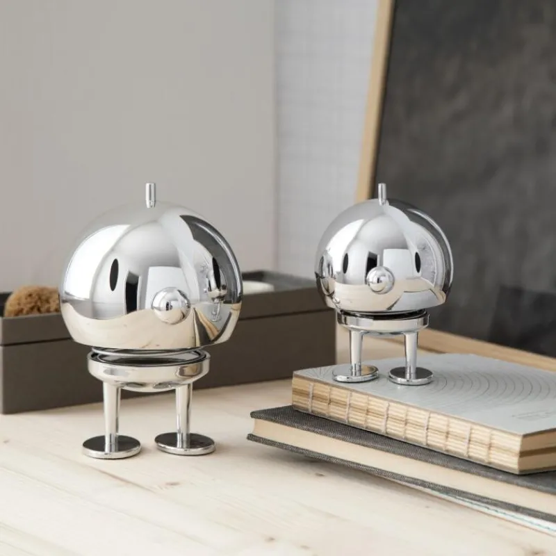Lachen ist ansteckend! Und die Hoptimisten sorgen, wie der Name schon sagt, hüpfend für gute Laune und ein Lächeln auf Ihren Lippen. Der klassische Hoptimist ist der Inbegriff von Fröhlichkeit, Optimismus und guter Laune und verbreitet mit dem rundlichen, freundlichen Ausdruck Freude, wo auch immer er hüpft. Tippt man dem lustigen Gesellen auf den Kopf, fängt die Feder an zu schwingen und versetzt den Hoptimisten somit in Bewegung. Das Modell Bumble repräsentiert die allerersten Hoptimisten aus der Hand des Designers und soll einen Jungen mit kleiner Antenne auf dem Kopf darstellen. Die freundlichen Hoptimisten sind heute ein Teil der dänischen Designgeschichte und sorgen weit über die Grenzen Dänemarks hinaus für gute Laune. Der Bumble in der Größe M ist 10,7 cm hoch, hat einen Durchmesser von 8,5 cm und besteht aus ABS-Kunststoff und Stahl.