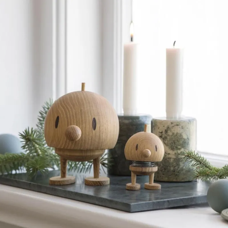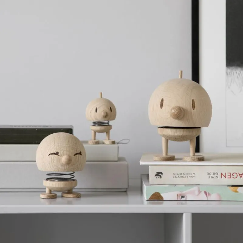 Lachen ist ansteckend! Und die Hoptimisten sorgen, wie der Name schon sagt, hüpfend für gute Laune und ein Lächeln auf Ihren Lippen. Der klassische Hoptimist ist der Inbegriff von Fröhlichkeit, Optimismus und guter Laune und verbreitet mit dem rundlichen, freundlichen Ausdruck Freude, wo auch immer er hüpft. Tippt man dem lustigen Gesellen auf den Kopf, fängt die Feder an zu schwingen und versetzt den Hoptimisten somit in Bewegung. Das Modell Bumble repräsentiert die allerersten Hoptimisten aus der Hand des Designers und soll einen Jungen mit kleiner Antenne auf dem Kopf darstellen. Die freundlichen Hoptimisten sind heute ein Teil der dänischen Designgeschichte und sorgen weit über die Grenzen Dänemarks hinaus für gute Laune. Der Bumble in der Größe S ist 7,6 cm hoch, hat einen Durchmesser von 5,8 cm und besteht aus naturbelassenem Eichenholz und Stahl.
