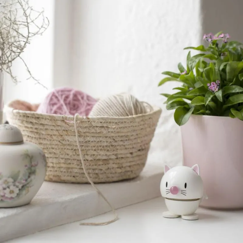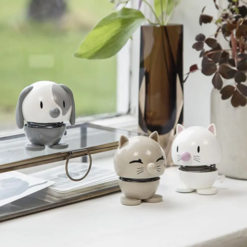 Lachen ist ansteckend! Und die Hoptimisten sorgen, wie der Name schon sagt, hüpfend für gute Laune und ein Lächeln auf Ihren Lippen. Der Hoptimist ist der Inbegriff von Fröhlichkeit, Optimismus und guter Laune und verbreitet mit dem rundlichen, freundlichen Ausdruck Freude, wo auch immer er hüpft. Tippt man dem lustigen Gesellen auf den Kopf, fängt die Feder an zu schwingen und versetzt den Hoptimisten somit in Bewegung. Die kleine weiße Katze mit spitzen Öhrchen ist 7,9 cm hoch, hat einen Durchmesser von 5,9 cm und besteht aus ABS-Kunststoff und Stahl.