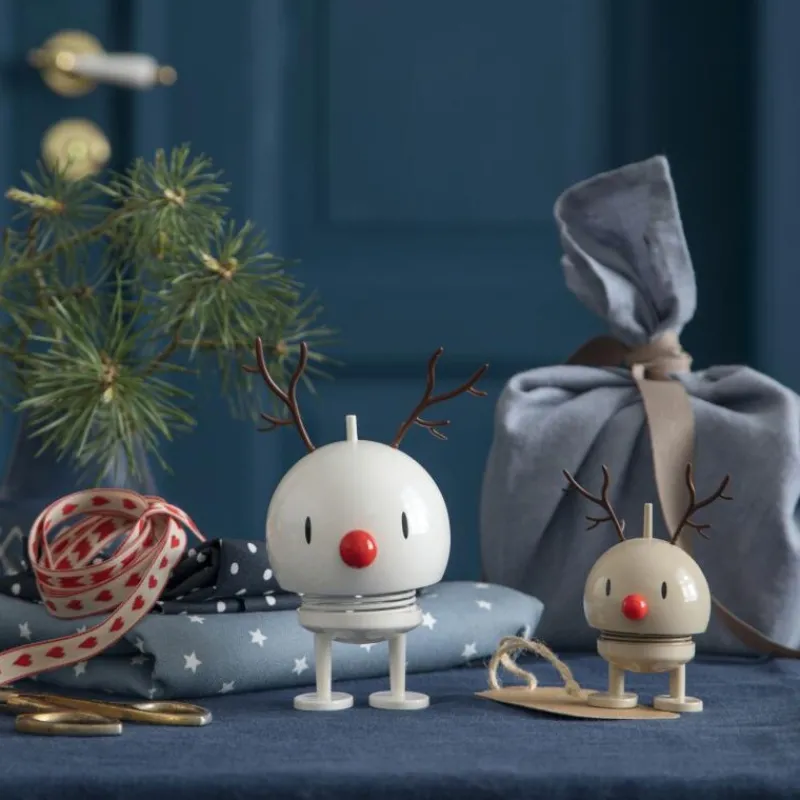 Lachen ist ansteckend. Und die Hoptimisten sorgen, wie der Name schon sagt, hüpfend für gute Laune und ein Lächeln auf Ihren Lippen. Der klassische Hoptimist ist der Inbegriff von Fröhlichkeit, Optimismus und guter Laune und verbreitet mit dem rundlichen, freundlichen Ausdruck Freude, wo auch immer er hüpft. Tippt man dem lustigen Gesellen auf den Kopf, fängt die Feder an zu schwingen und versetzt den Hoptimisten somit in Bewegung. Das Modell Bumble als Weihnachts-Rentier ist mit einem Geweih aus Kunststoff ausgestattet. Die freundlichen Hoptimisten sind heute ein Teil der dänischen Designgeschichte und sorgen weit über die Grenzen Dänemarks hinaus für gute Laune – so natürlich auch zum Weihnachtsfest. Der Artikel wird aus Kunststoff und Stahl hergestellt und ist 9,5 cm hoch.