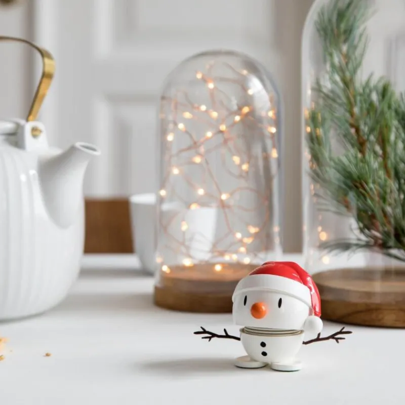 Lachen ist ansteckend. Und die Hoptimisten sorgen, wie der Name schon sagt, hüpfend für gute Laune und ein Lächeln auf Ihren Lippen. Der klassische Hoptimist ist der Inbegriff von Fröhlichkeit, Optimismus und guter Laune und verbreitet mit dem rundlichen, freundlichen Ausdruck Freude, wo auch immer er hüpft. Tippt man dem lustigen Gesellen auf den Kopf, fängt die Feder an zu schwingen und versetzt den Hoptimisten somit in Bewegung. Das Modell Bumble als Schneemann ist mit einer lustigen Zipfelmütze ausgestattet. Die freundlichen Hoptimisten sind heute ein Teil der dänischen Designgeschichte und sorgen weit über die Grenzen Dänemarks hinaus für gute Laune – so natürlich auch zum Weihnachtsfest. Der Artikel wird aus Kunststoff und Stahl hergestellt und ist 6,9 cm hoch.