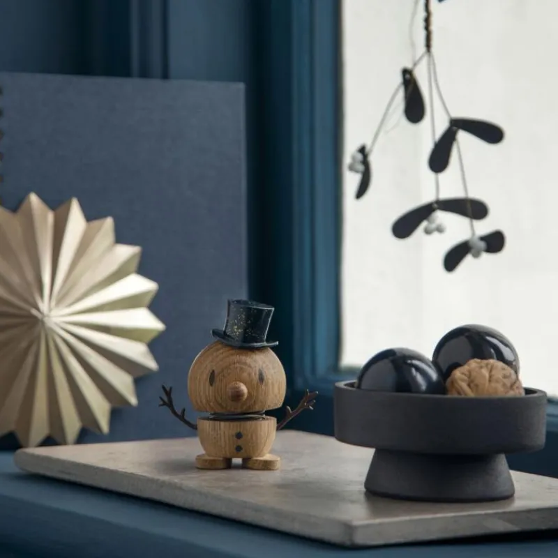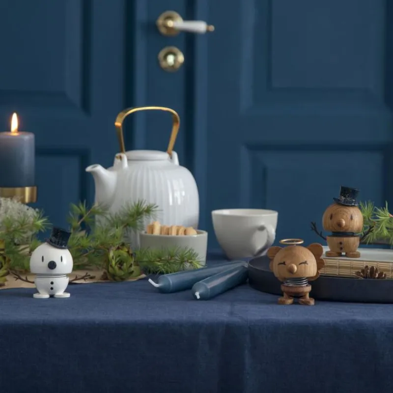 Lachen ist ansteckend. Und die Hoptimisten sorgen, wie der Name schon sagt, hüpfend für gute Laune und ein Lächeln auf Ihren Lippen. Der klassische Hoptimist ist der Inbegriff von Fröhlichkeit, Optimismus und guter Laune und verbreitet mit dem rundlichen, freundlichen Ausdruck Freude, wo auch immer er hüpft. Tippt man dem lustigen Gesellen auf den Kopf, fängt die Feder an zu schwingen und versetzt den Hoptimisten somit in Bewegung. Das Modell Bumble als kleiner Schneemann trägt einen schwarzen Zylinder, der leicht Gold glitzert. Die freundlichen Hoptimisten sind heute ein Teil der dänischen Designgeschichte und sorgen weit über die Grenzen Dänemarks hinaus für gute Laune – so natürlich auch zum Weihnachtsfest. Der Artikel wird aus Eichenholz hergestellt und ist 7,8 cm hoch.