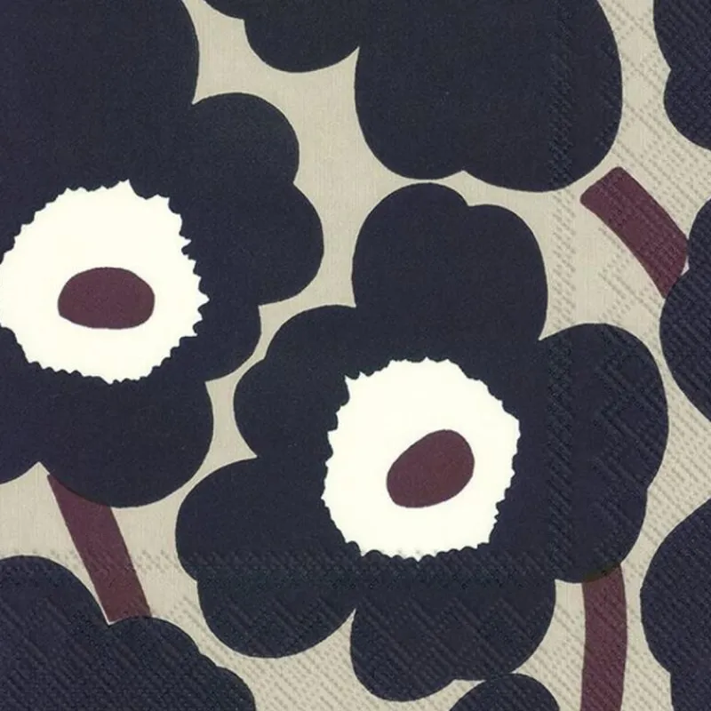 Die finnische Designfirma Marimekko wird weltweit für ihre bekannten, farbenfrohen Prints gefeiert. Gegründet wurde sie von Armi Ratia, die während der eher modisch eher restriktiven 50er-Jahre Kleider mit abstrakten und grafischen Mustern in lebensfrohen Farben entwarf. Der zeitlose und schöpferische Umgang mit Farbe und Formen verleiht Produkten von Marimekko eine starke und außergewöhnliche Identität. Die Entwürfe mit der einzigartigen Designsprache werden heute auch auf Accessoires und Dekorationsartikeln gedruckt, unter anderem auf Papierservietten.