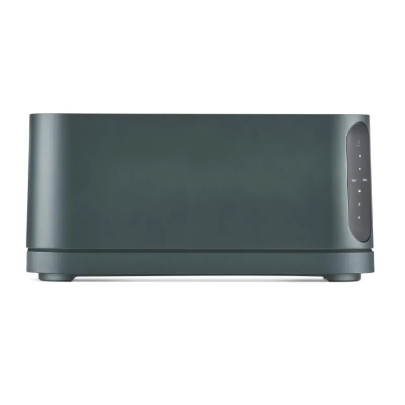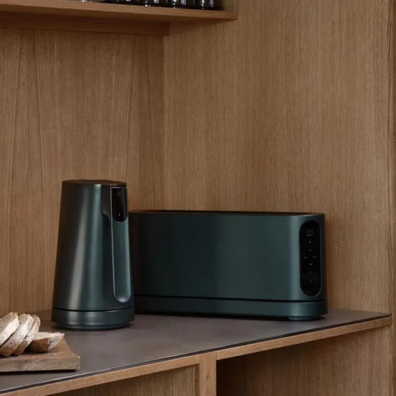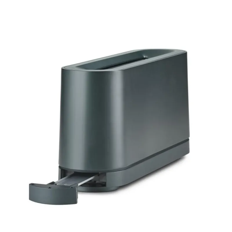 Der Long Slot Toaster von Jacob Jensen überzeugt mit soliden Materialien und einer ruhigen Eleganz. Ein besonderes Augenmerk wurde darauf gelegt, dass er möglichst leise funktioniert, um eine entspannte Morgen-Routine zu schaffen. Dafürwurde ein Soft-Lift-Mechanismus entwickelt, der das Brot auf Knopfdruck langsam in und aus dem Toaster führt. Der Toaster verfügt über eine intelligente Benutzeraberfläche, die zum Leben erwacht, sobald man sich ihr nähert und von alleine wieder ausgeht, wenn sie ncht mehr benötigt wird. Über das Display kann aus sieben Bräunungsstufen ausgewählt werden, der Toaster bietet außerdem eine Bagel-Funktion, bei der nur auf einer Seite getoastet wird, ein Auftau-Programm, um gefrorenes Brot vor dem Toasten aufzutauen sowie eine Aufwärmfunktion. Der Langschlitztoaster besteht sowohl außen als auch innen aus Edelstahl, er ist 41 cm lang, 11 cm breit und 19,5 cm hoch. Der Toast-Schlitz ist 26 cm lang.