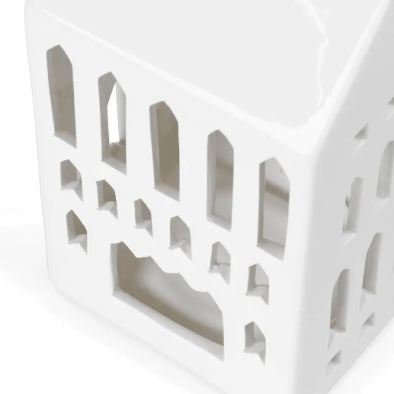 Die Urbania-Kollektion, die eine Hommage an das Licht darstellt, eignet sich perfekt zur Hervorhebung der Weihnachtsstimmung. Die kleinen Fayence-Häuser, kreiert vom Design-Duo Bache und Bendix Becker, sind von bekannten Gebäudetypen inspiriert und werfen durch ihre Fenster und Türen ein schönes Licht. Auch das charakteristische Lichthaus Church mit ausgeprägten klassizistischen Merkmalen bildet da keine Ausnahme. Lassen Sie es für sich selbst strahlen oder gruppieren Sie es mit anderen Urbania-Häusern, um auf der Fensterbank, dem Sideboard oder dem Weihnachtstisch einen wahrhaft einzigartigen Ausdruck zu schaffen. Das Lichthaus Church ist 18 cm hoch und 10 cm breit.