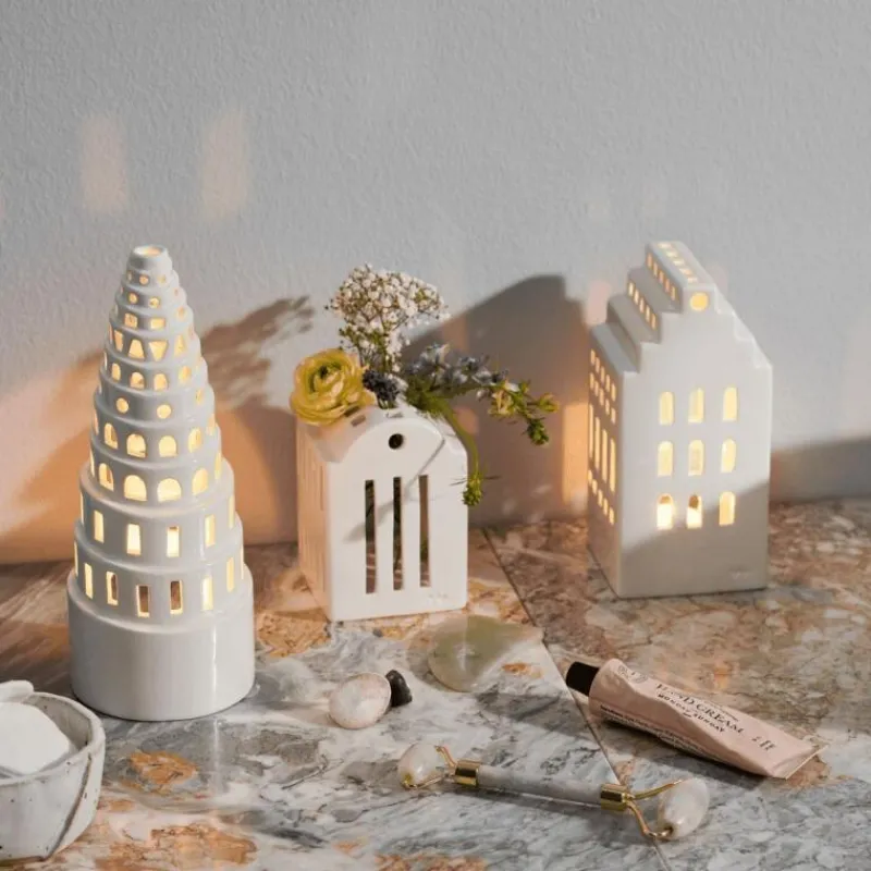 Die Urbania-Kollektion, die eine Hommage an das Licht darstellt, eignet sich perfekt zur Hervorhebung der Weihnachtsstimmung. Die kleinen Fayence-Häuser, kreiert vom Design-Duo Bache und Bendix Becker, sind von bekannten Gebäudetypen inspiriert und werfen durch ihre Fenster und Türen ein schönes Licht. Auch das charakteristische Lichthaus Manor mit ausgeprägten klassizistischen Merkmalen bildet da keine Ausnahme. Lassen Sie es für sich selbst strahlen oder gruppieren Sie es mit anderen Urbania-Häusern, um auf der Fensterbank, dem Sideboard oder dem Weihnachtstisch einen wahrhaft einzigartigen Ausdruck zu schaffen. Das Lichthaus Manor ist 17 cm hoch und 8 cm breit.