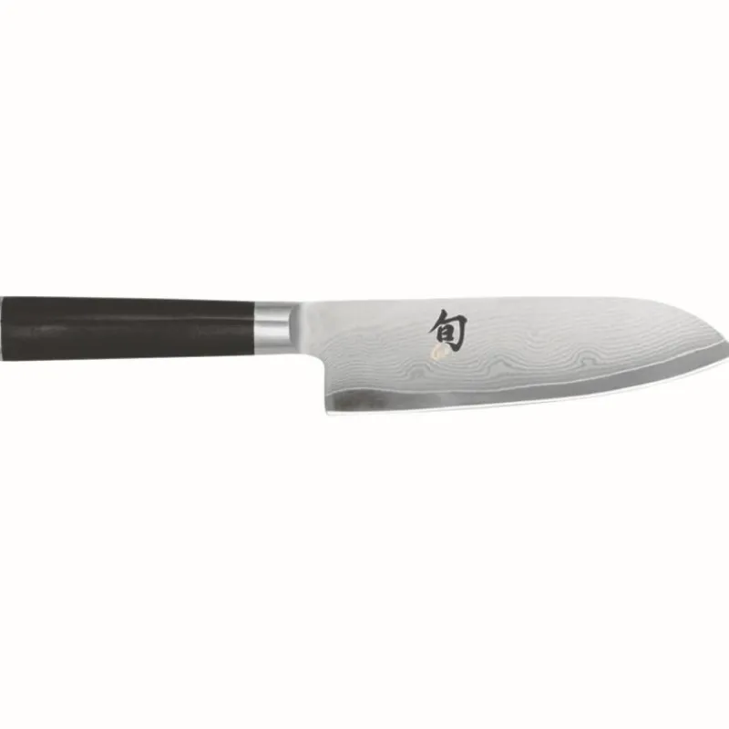 Die gesamte Klinge des Santokumessers aus der Shun-Serie von Kai ist aus VG MAX Stahl mit einer Härte von 61 (? 1) gefertigt, der mit 32 Lagen Damaszenerstahl ummantelt ist. Die stabile Klinge wird durch den Gebrauch dieser beiden Komponenten sehr hart und zugleich elastisch. Das Messer weist einen beidseitigen Schliff auf. Der Griff besteht aus Pakkaholz und ist nach der traditionellen Kastanienform gestaltet, die für einen bequemen und sicheren Halt beim Schneiden sorgt. Das Santoku-Messer ist die japanische Form des Kochmessers. Santoku bedeutet übersetzt „drei Tugenden“: das Messer kann für Gemüse, Fleisch und Fisch eingesetzt werden. Es hat eine Klingenlänge von 18 cm, der Griff ist 12,2 cm lang.