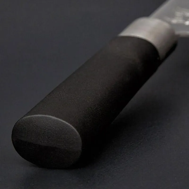 Die polierte Klinge des Kochmessers der Serie Wasabi Black besteht aus korrosionsbeständigem 6A/1K6-Stahl mit einem Härtegrad von 58 (+/- 1) HRC. Der hohe Kohlenstoffanteil dieser reinen Edelstahlsorte ermöglicht eine besonders gute Schnitthaltigkeit. Der sich leicht nach oben wölbende Klingenrücken sorgt für einen sicheren Griff beim Arbeiten und ermöglicht beispielsweise feine Wiegebewegungen. Der robuste Griff aus mattschwarzem Kunststoff wird nicht an das Messer gesteckt, sondern umschließt den Erl des Messers komplett, sodass beide Teile fest miteinander verbunden sind. Das Kochmesser ist das wichtigste Messer in der Küche: es kann universell zum Schneiden von Fisch, Fleisch und Gemüse verwendet werden. Die Klingenlänge des Kochmessers beträgt 20 cm, insgesamt ist es 33,6 cm lang.