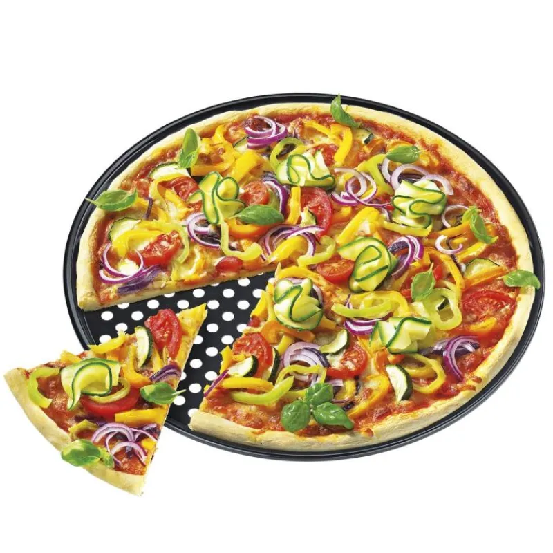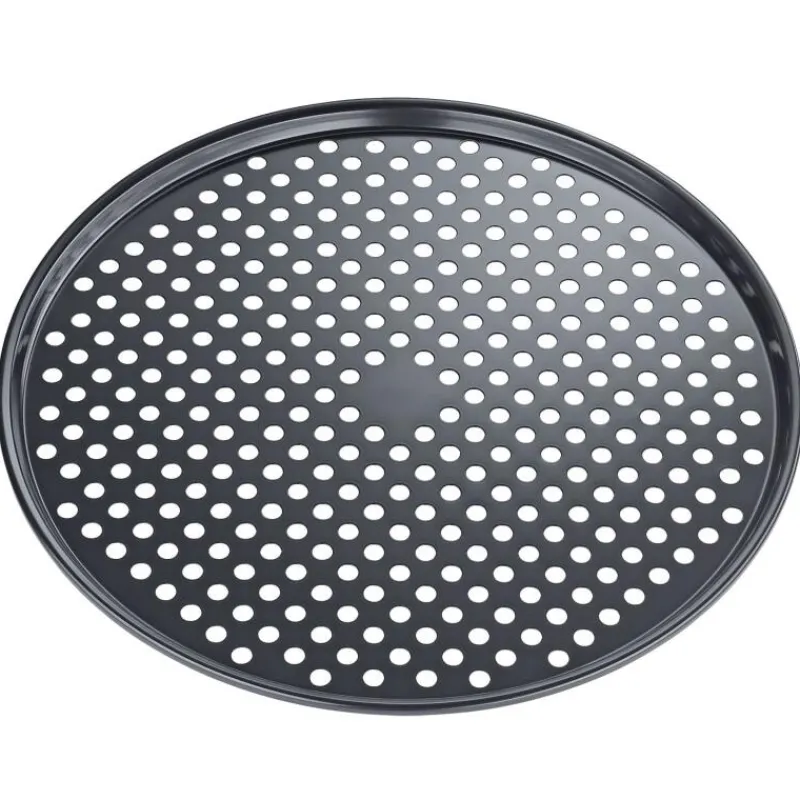 Was wäre eine selbstgebackene Pizza ohne eine leckeren, extra krossen Boden? Mit dem Bake One Pizzablech gelingt jede Pizza-Variante ganz ohne Mühe. Das robuste Stahlblech ist gelocht, so zirkuliert die heiße Luft im Backofen und verteilt sich gleichmäßig. Dank hochwertiger Antihaftbeschichtung bleibt nichts kleben und die Pizza gleitet mühelos herunter. Das Blech eignet sich zum Aufwärmen von Brot oder für die Zubereitung von Pommes im Backofen. Das Pizzablech ist hitzebeständig bis zu einer Temperatur von 230°C und sollte nach Gebrauch nur von Hand gespült werden. Es hat einen Durchmesser von 36 cm.